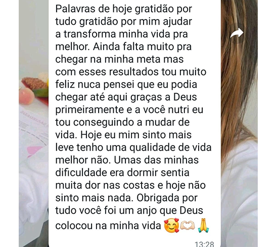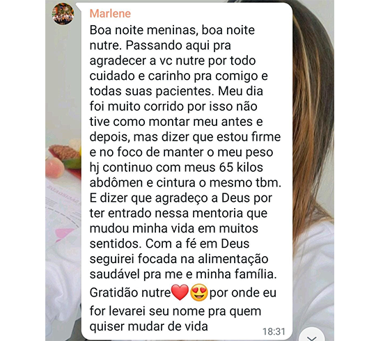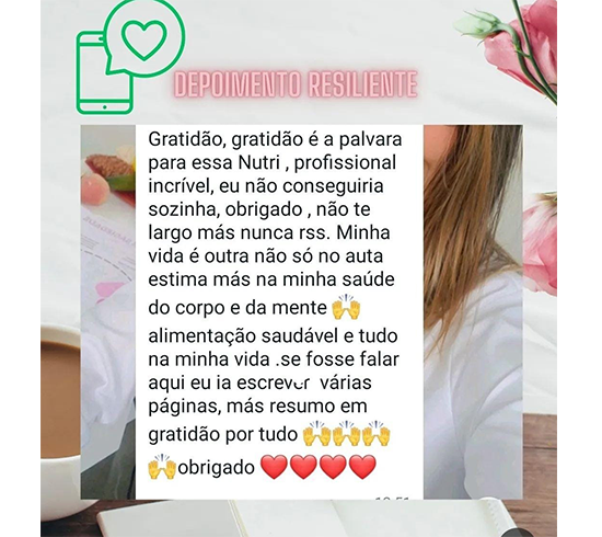 São muitas vidas impactadas, através do tratamento nutricional humanizado. Sempre busco orientar, acolher, direcionar, dando total atenção aos desafios dos meus pacientes na adesão ao planejamento alimentar. São diversos fatores que contribuem para as dificuldades nas escolhas dos alimentos. Sem compreensão, não haverá mudança no comportamento, sem autoconhecimento, ficará difícil conquistar novos hábitos de vida, consequentemente um corpo mais saudável.